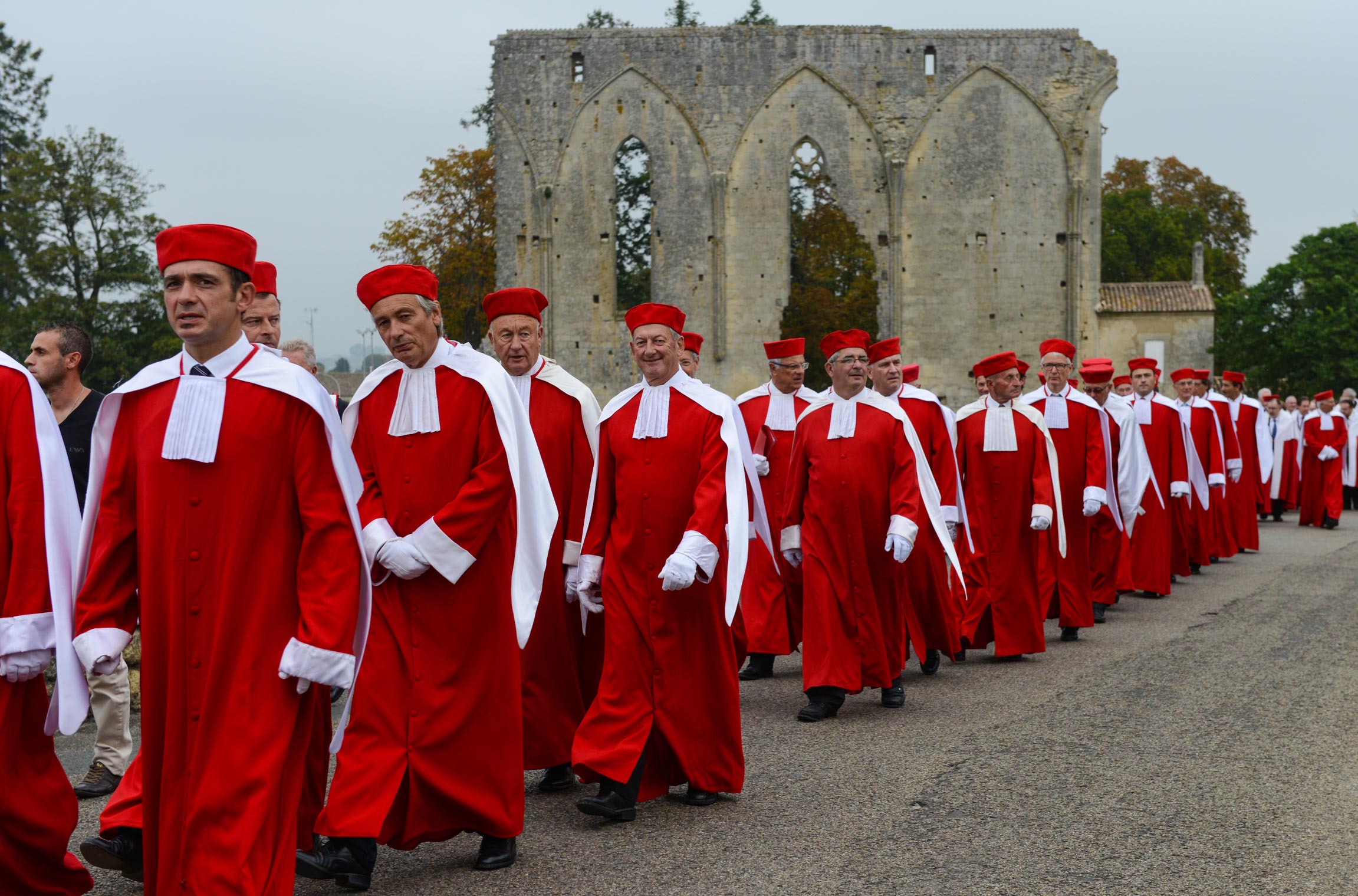 Confrérie forte de 140 Jurats qui portent toque et robe rouges parées d’hermine blanche, la Jurade organise des cérémonies d’intronisation dans le monde entier.