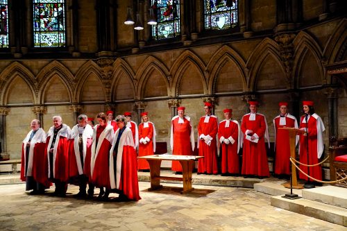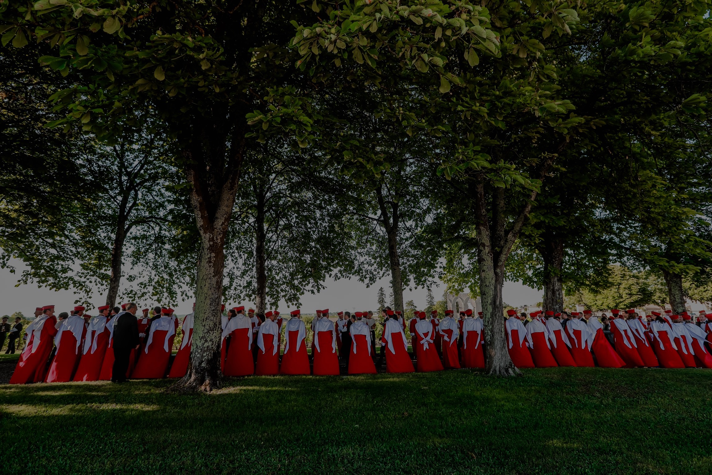 La robe rouge des Jurats et l’épitoge des intronisés témoignent de la longue histoire du vignoble de Saint-Émilion.