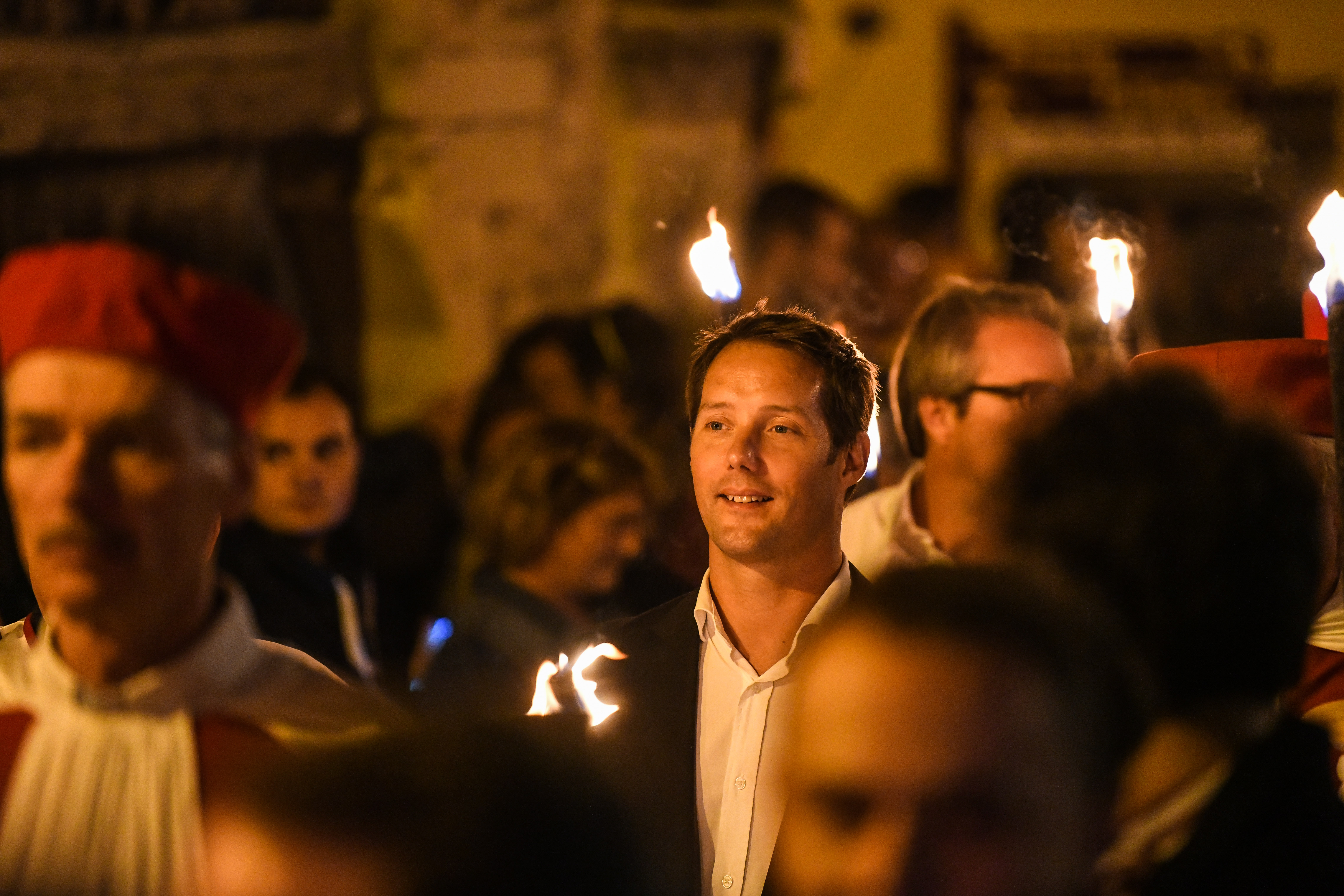 Samedi 21 septembre, à l’occasion de la Nuit du Patrimoine, Thomas Pesquet a découvert les traditions saint-emilionnaises en se joignant au défilé aux flambeaux de la Jurade à travers les ruelles de la cité.